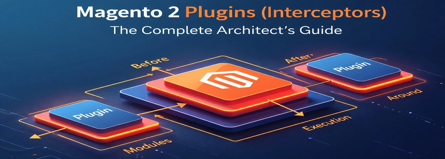 A plugin also called an interceptor lets you modify the behaviour of any public method on any class without touching the original code. In Magento 2 plugin interceptors, You declare the plugin in di.xml, run setup:di:compile, and Magento generates a wrapper class called an Interceptor that sits between the caller and the original class at runtime.